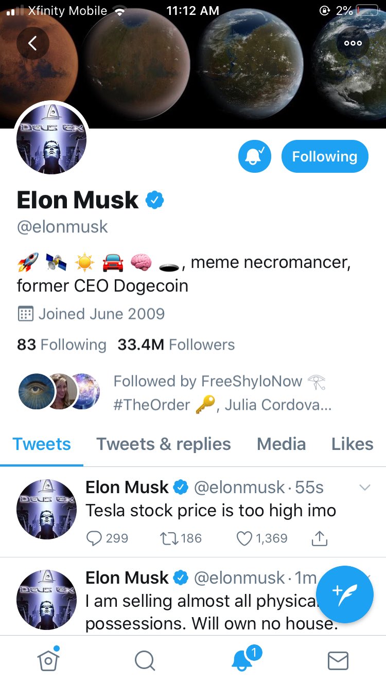 Shortly after a bunch of analysts upgrade their price targets something you would think Elon would approve of both for his own financial gain as well as his battle against. Tesla stock price is too high imo Elon Musk elonmusk May 1 2020 The subsequent share drop erased around 13 billion from Teslas market value and nearly 3. Remember when Tesla shares tanked by 10 moments after its CEO Elon Musk tweeted.